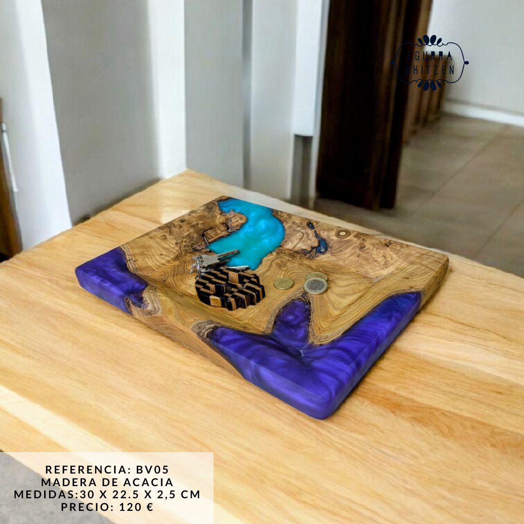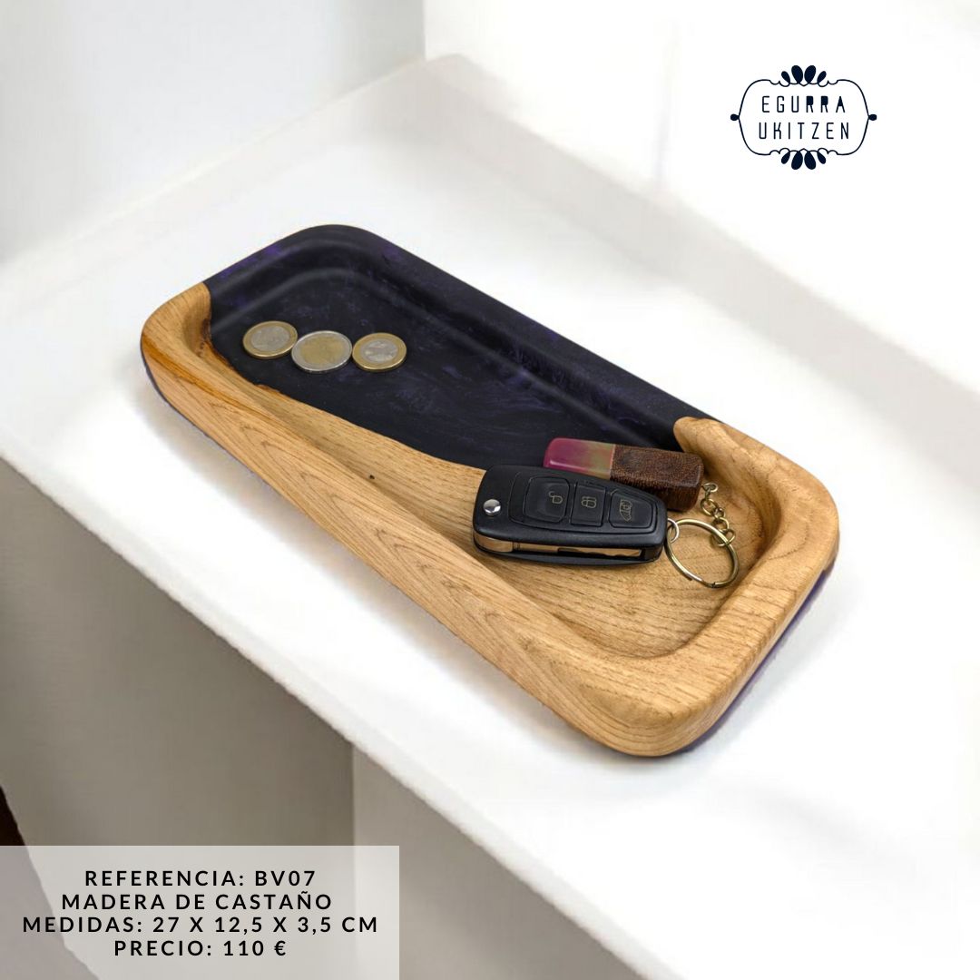 Descubre la elegancia de nuestras exclusivas bandejas vacía bolsillos, diseñadas en una combinación perfecta de madera natural y resina. Cada pieza es única, fusionando la calidez de la madera con la modernidad de la resina, creando un diseño funcional y sofisticado.