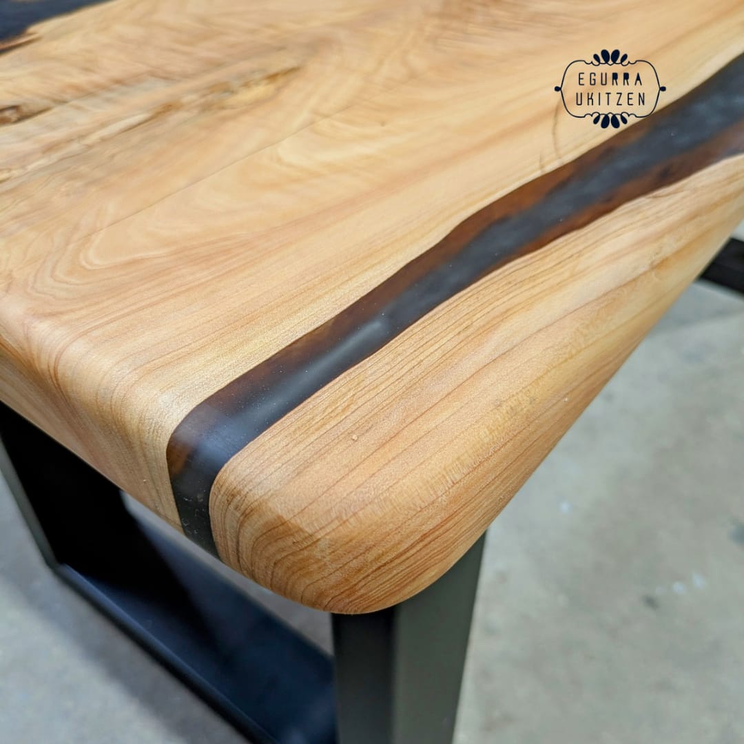 Cada mesa está hecha a mano, respetando la forma natural de la madera y utilizando materiales de alta calidad. Las patas metálicas en forma de U aportan estabilidad y un estilo moderno e industrial, ideal para espacios que buscan personalidad y autenticidad.